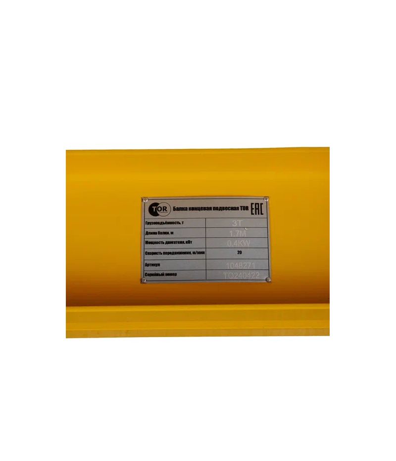 Балки концевые подвесные производства TOR industries соответствуют требованиям Технического регламента Таможенного союза — ТР ТС 010/2011 «О безопасности машин и оборудования».
