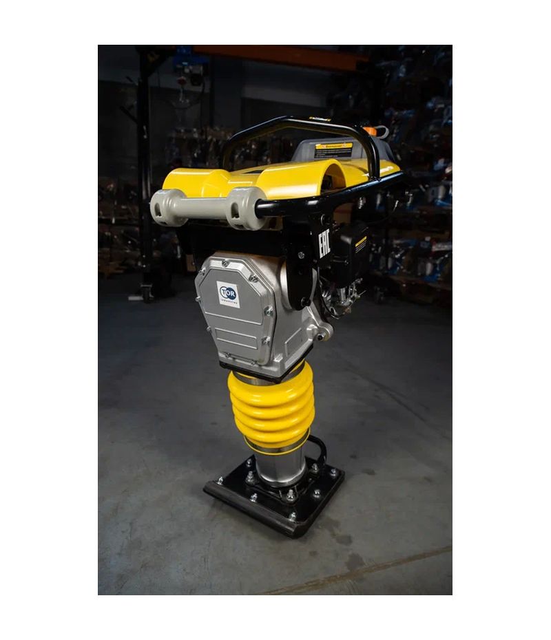 Вибротрамбовка TOR RM-75(R) 75кг,14кН (Honda) 1010059 с частотой ударов 640-680 уд/мин, ударная сила 14 кН с мощным бензиновым двигателем Honda 4 л.с. Популярная модель вибротрамбовки с высокой силой удара 14кН.