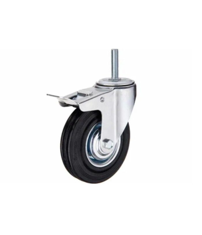 Колесо поворотное SCtB 93 75 мм резина с болтом и тормозом (N) 1045343 грузоподъемностью 50 кг, диаметр колеса 75 мм.