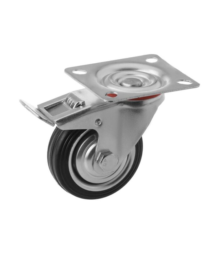 Колесо поворотное резина SCb 97 85 мм с тормозом (F) 1046153 грузоподъемностью 50 кг, диаметр колеса 85 мм.