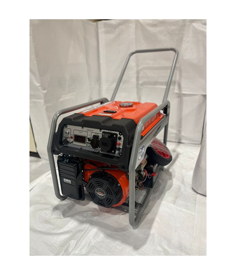 Генератор бензиновый 5,0 кВт 220В с АВР, электростартером и колесами TOR KM6500HA 1049608 напряжение 220 В, стартер электростартер предназначен для автономного электроснабжения различных электрических потребителей однофазным током (бытовой техники, электроинструмента, осветительных приборов и пр.), в условиях отсутствия возможности использования бытовой электросети. Система автономного ввода резерва (АВР) подключается к общей электросети и автоматически запускает генератор при отсутствии электроснабжения.