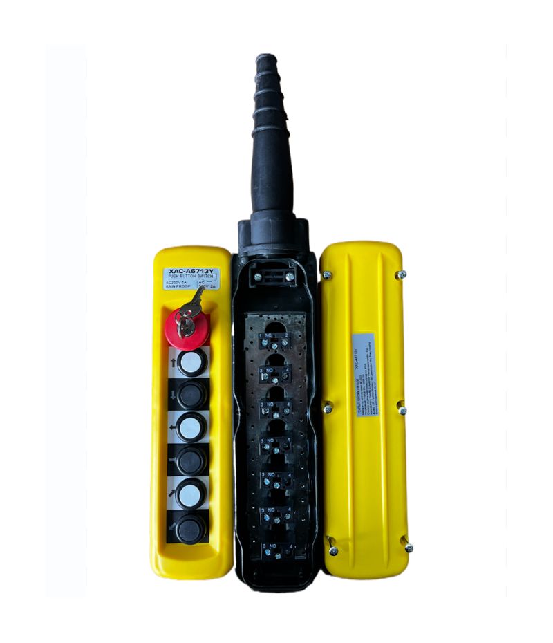 Пульт управления XAC-A6713Y для тали (6 кнопок, 1 скорость, ключ-марка, стоп, IP65, 380В): особенности выбора